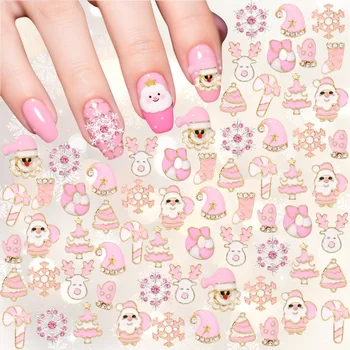 Pink Alloy Christmas Series Mini Snowman Reindeer Cute Cartoon Nail Art Decoration Accessories