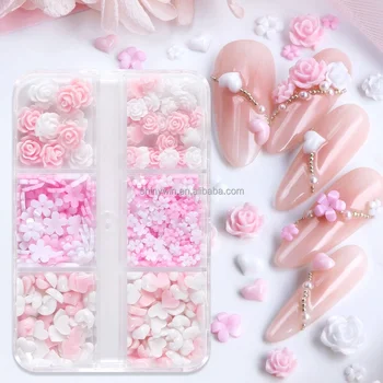 للبيع بالجملة أحجار بلينغ فاخرة مخصصة تضغط على الأظافر تابوت متوسط الحجم على شكل قلب لؤلؤي أظافر فرنسية مانيكير أكريليك عصا على الأظافر