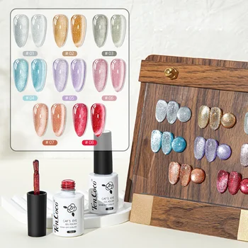 8 Colors Glass Bead Galaxy Cat Eye Nail Gel Polish Ice-transparent Explosive Flash Chasing Light Cat's Eye Gel Nail Polish Gel