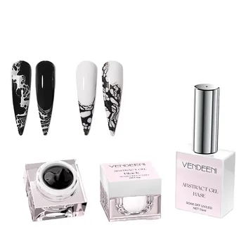 Black and White Abstract Nail Gel Polish 15ml No-wash Hole Lace Painting Texture Nail Art Polish Gel