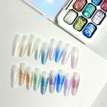 Pearlescent Silk Texture Pat Painting Gel Polish 9 Color Grid Embossed Gradient Blooming Effect Nail Art Pat Painting Polish Gel