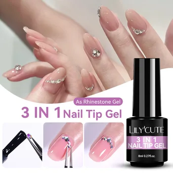 3 in 1 Nail Tip Gel Multi-functional Soft Tips Rhinestones Construction Gel Long Lasting Transparent Nail Art Extension Gel