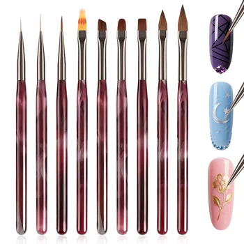 Wine Red Ink Acrylic Handle Nail Painting Brush Nail Art Drawing Liner Crimped Crystal Nail Pen Brush Manicure Tool