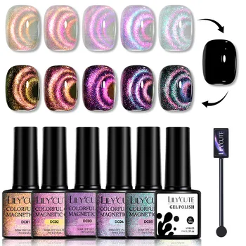 6 Colors Magnetic Cat Eye Gel Polish 7ml/bottle Long Lasting Colorful Cat Eye Nail Art Polish Gel