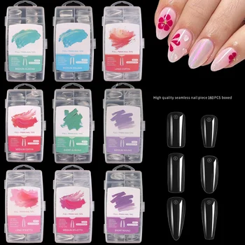 High Quality 160pcs/box Seamless Nail Tips Almond Ballet Square Coffin Stiletto Full Cover False Nail Art Tips