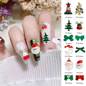 Hot Sale Christmas Alloy Diamond Nail Charms Cute Sweet and Cool Christmas Tree Bow Tie Snowman Nail Art Accessories