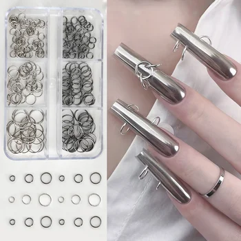 6 Gird Punk Style Perforated Circular Silver Nail Art Charms Accessories Metal Round Circular Nail Art DIY Decoration