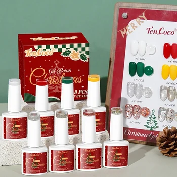 8 Colors Set Christmas Series Glitter Gel Polish 10ml Long Lasting Christmas Nail Art DIY Gel Polish Kit